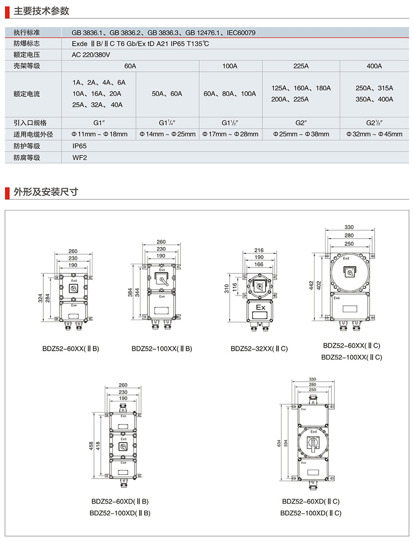 BQC53系列防爆磁力起动器(IIB、IIC、Ex tD)