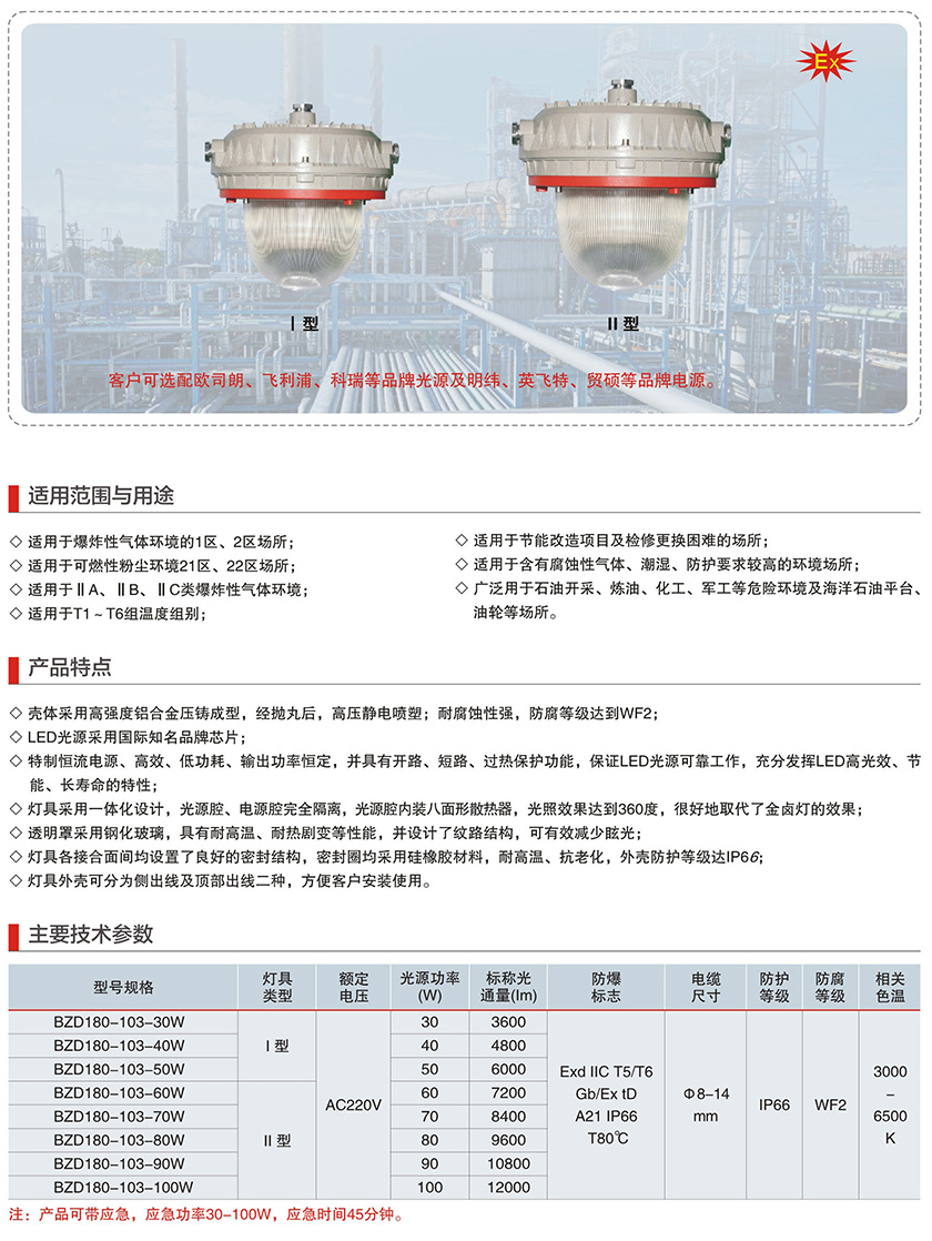 BZD180-106系列防爆免维护LED照明灯(IIC)