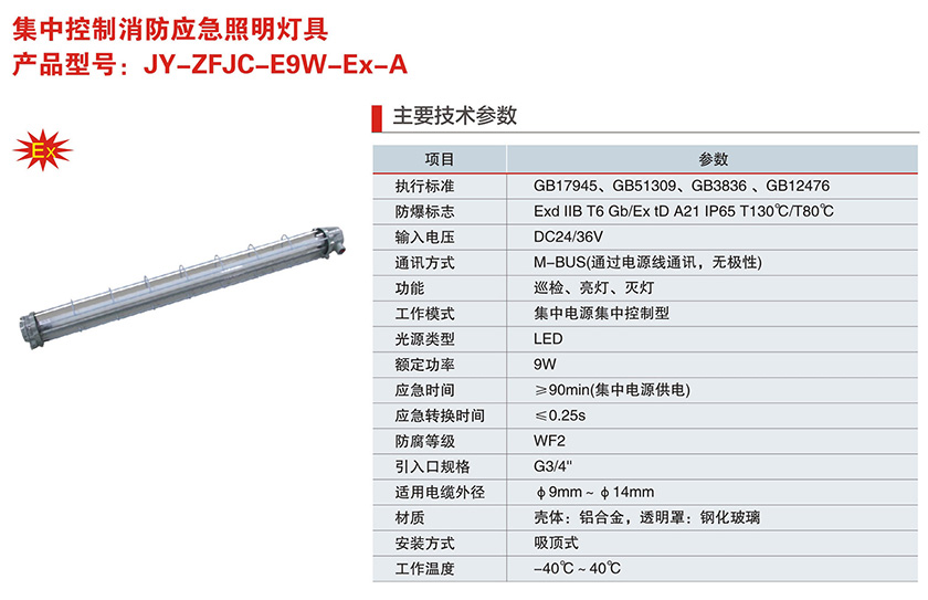 JY-ZFJC-E6W-Ex系列集电集控型消防应急照明灯具